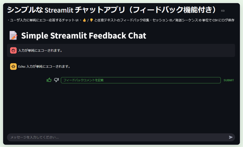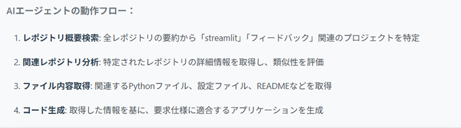 「フィードバック機能を搭載したシンプルなStreamlitアプリを作成してください。過去事例で類似のものを作成しているので、社内リポジトリを参照してください」という指示に対して、GitBucket