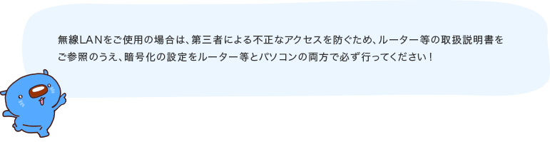 無線LANは必ず暗号化する、長時間利用しないパソコンは電源オフが基本です。