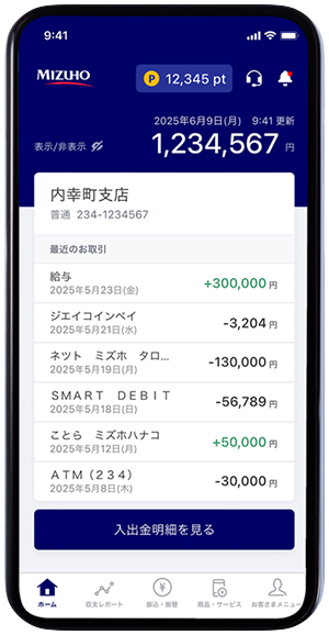 ホーム画面から該当の口座残高をご確認ください。