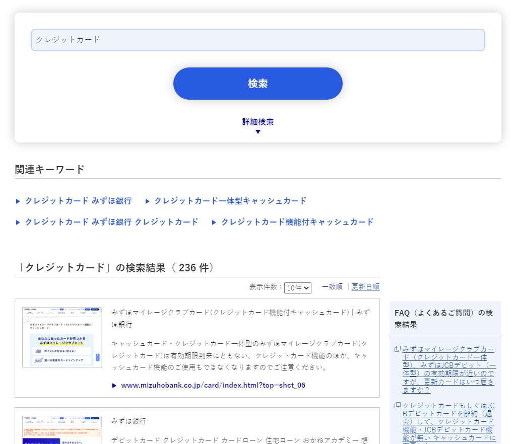 みずほ銀行のウェブサイトを検索することができます。