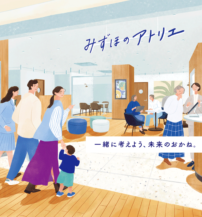 「みずほのアトリエ」は、個人のお客さま専用の店舗です。資産形成・運用については営業時間中いつでもご相談いただけます。お取扱業務の詳細は以下をご確認ください。「みずほのアトリエ」でお取り扱いできないお手続きについては、みずほダイレクト[インターネットバンキング]、またはお近くのみずほ銀行本支店をご利用ください。